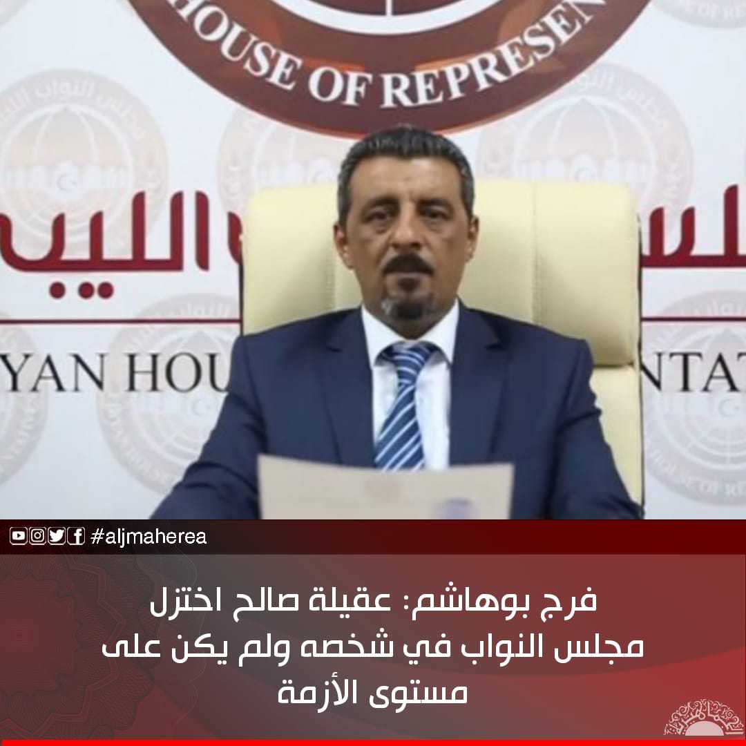 وشدد بوهاشم، كما يعلم الجميع لم تعقد جلسة منذ أكثر من سنة، وكل هذه الأمور أدت إلى تعطيل مجلس النواب، وكنا نأمل أن يكون عقيلة صالح في مستوى الحدث وفي مستوى الأزمة من حيث جمع الأعضاء ومن حيث التواصل ولو هاتفيًا، لكن هذا لم يحصل، وليست لدى أي من الأعضاء مصلحة في الإطاحة بعقيلة صالح أو إقصائه، ولو كان هذا هو الهدف لاجتمع المجلس في السابق وتم إقصاؤه.