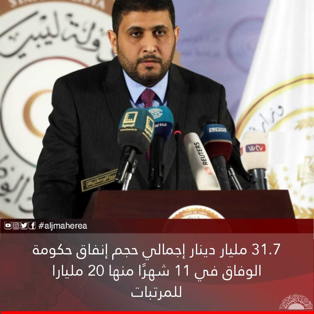 31.7 مليار دينار إجمالي حجم إنفاق حكومة الوفاق في 11 شهرًا منها 20 مليارا للمرتبات