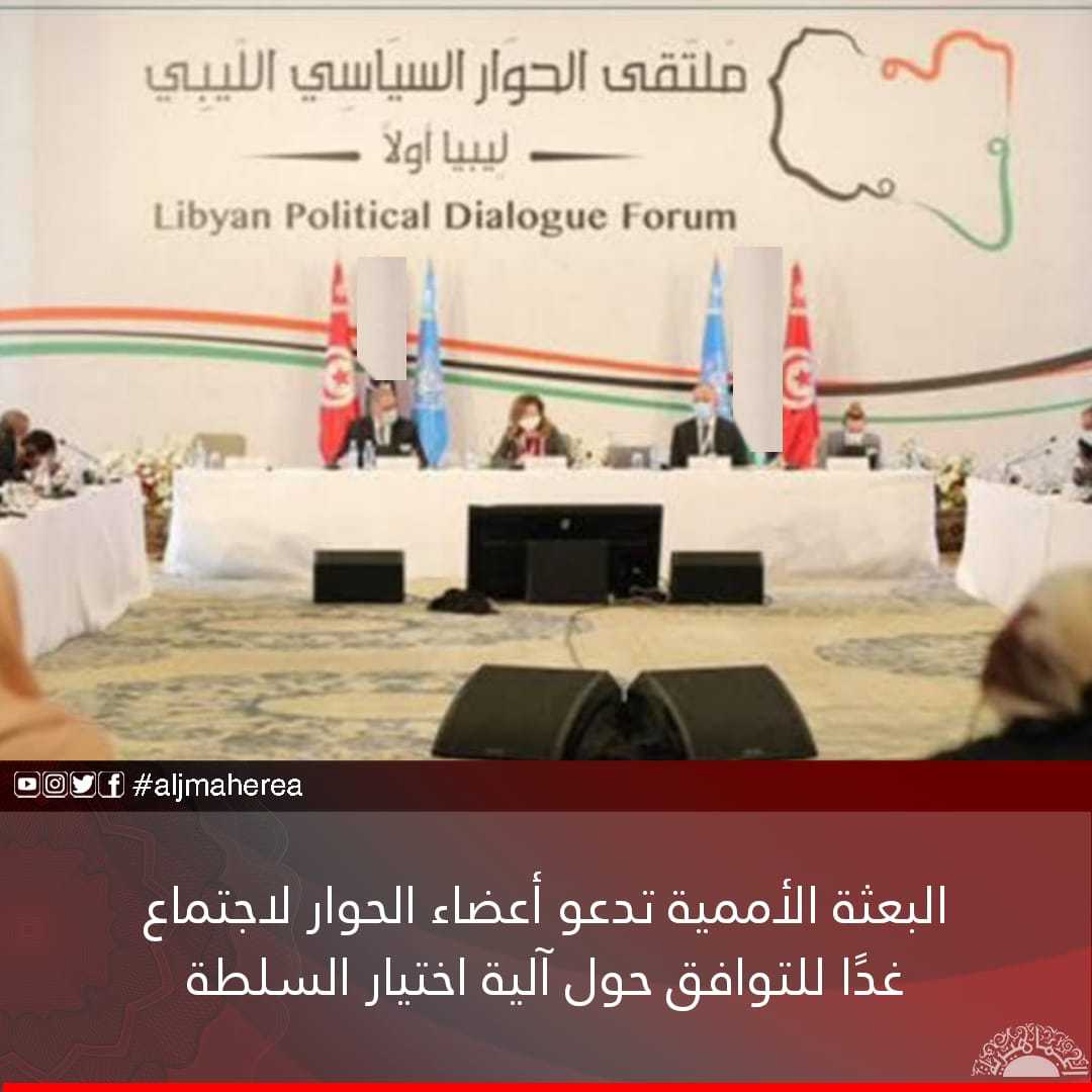 أعلنت البعثة الأممية في ليبيا اليوم الأربعاء، عن دعوتها لأعضاء ملتقى الحوار السياسي الليبي، لاجتماع عبر الاتصال المرئي يوم غدٍ الخميس الموافق10 ديسمبر.