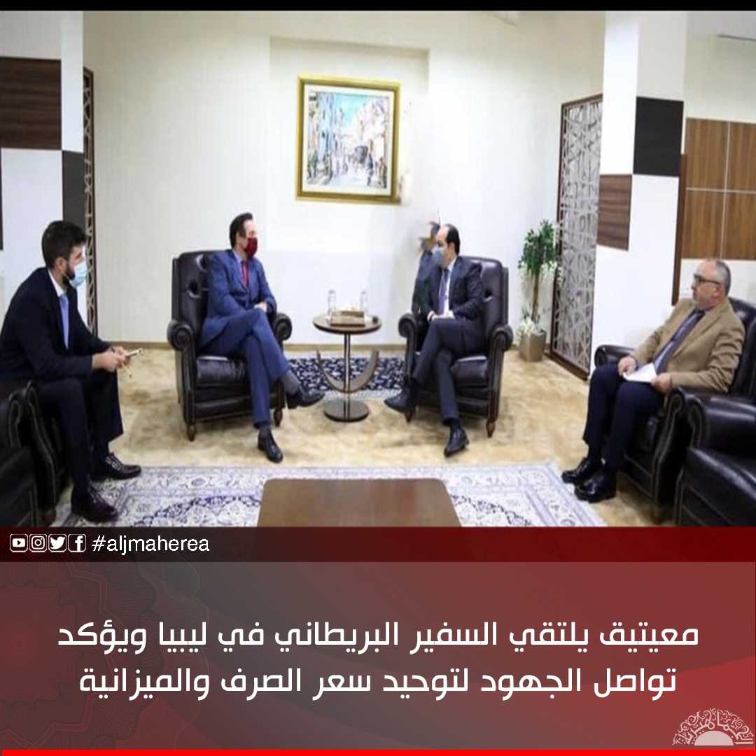 معيتيق يلتقي السفير البريطاني في ليبيا ويؤكد تواصل الجهود لتوحيد سعر الصرف والميزانية