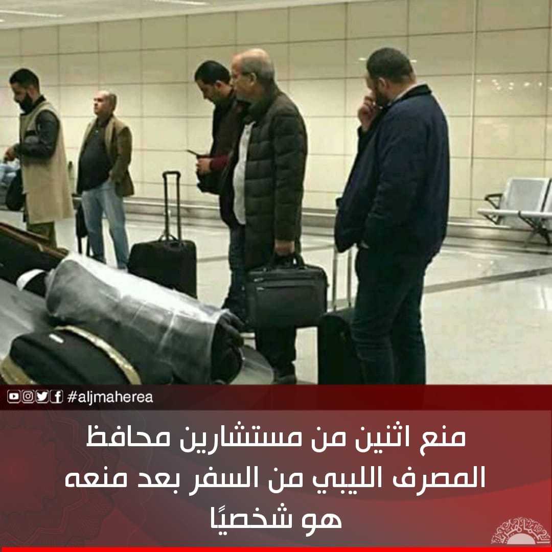 نقلت تقارير صحفية أن سلطات مطار معيتيقة اليوم الخميس، اعترضت محافظ المصرف الليبي الصديق الكبير واثنين من مستشاريه مصطفى المانع ووليد تارسين من الصعود على الطائرة.
