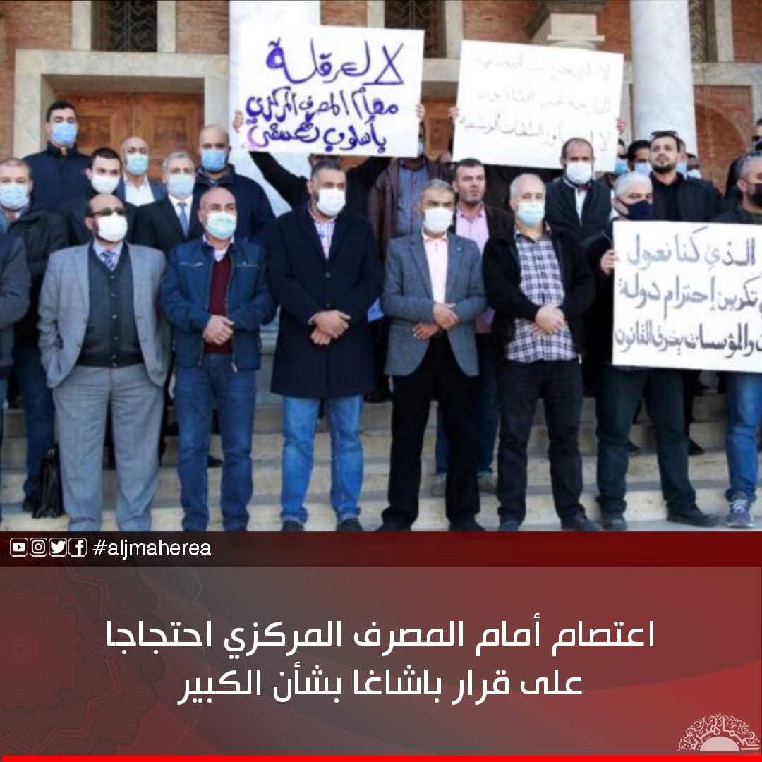 نظم عدد من الموظفين بالمصرف المركزي طرابلس اعتصام أمام مقره.