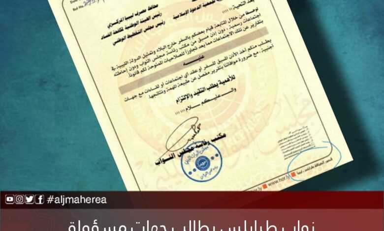 طالب مجلس نواب طرابلس من عدة جهات ضرورة الحصول على إذن مسبق قبل السفر أو عقد أي اجتماعات أو لقاءات مع جهات أجنبية.