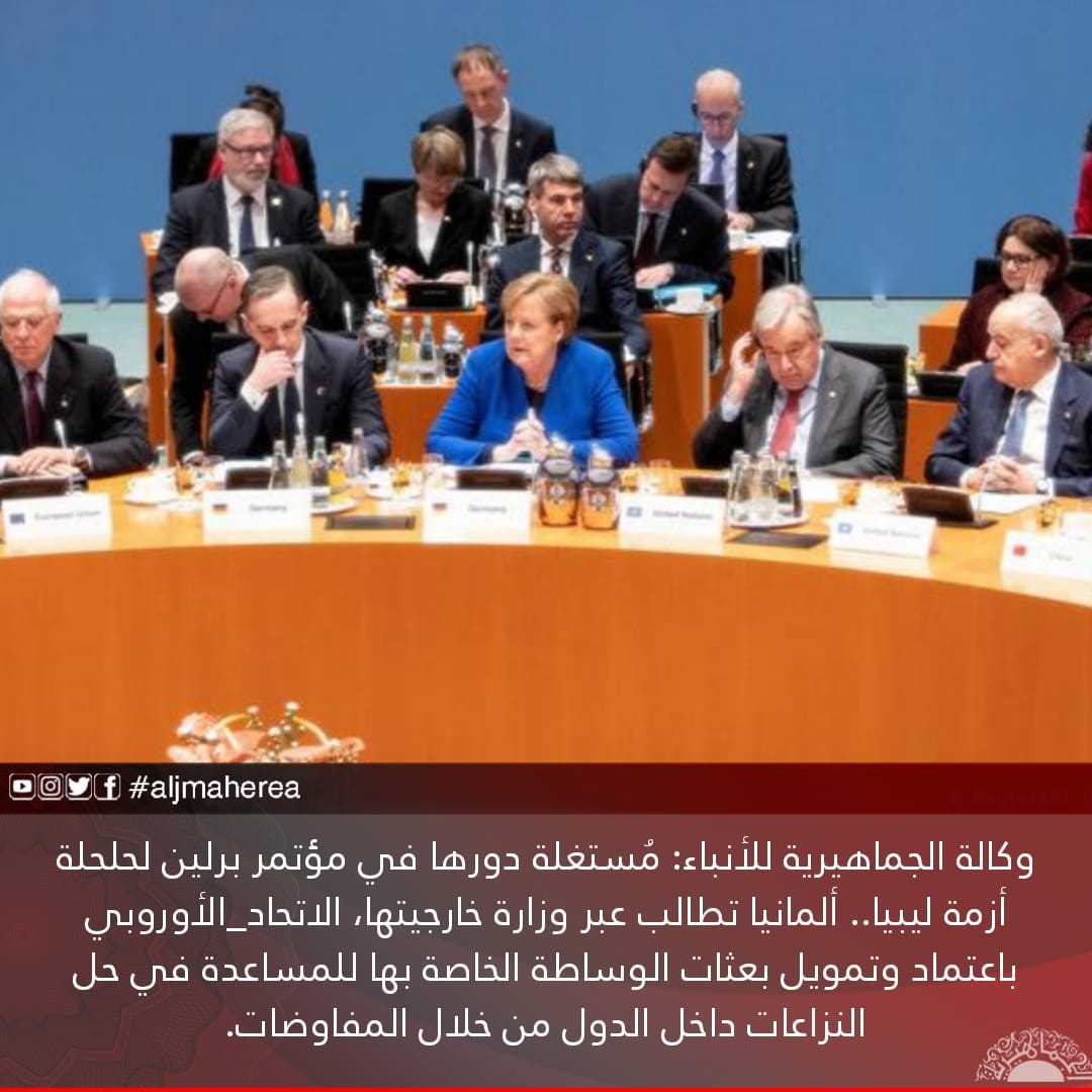 وكالة الجماهيرية للأنباء: مُستغلة دورها في مؤتمر برلين لحلحلة أزمة ليبيا.. ألمانيا تطالب عبر وزارة خارجيتها، الاتحاد_الأوروبي باعتماد وتمويل بعثات الوساطة الخاصة بها للمساعدة في حل النزاعات داخل الدول من خلال المفاوضات.