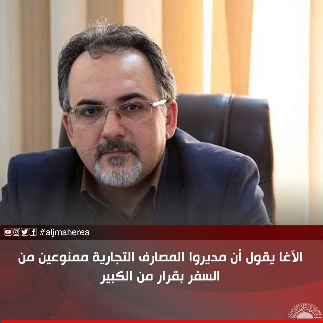 وقال الآغا في تدوينة له على صفحته بموقع التواصل الاجتماعي ”فيسبوك”: مديرون بالمصارف التجارية ممنوعون من السفر بإذن من الصديق الكبير، مؤكدا أن هذا الإجراء مطبّق من سنوات ماضية.
