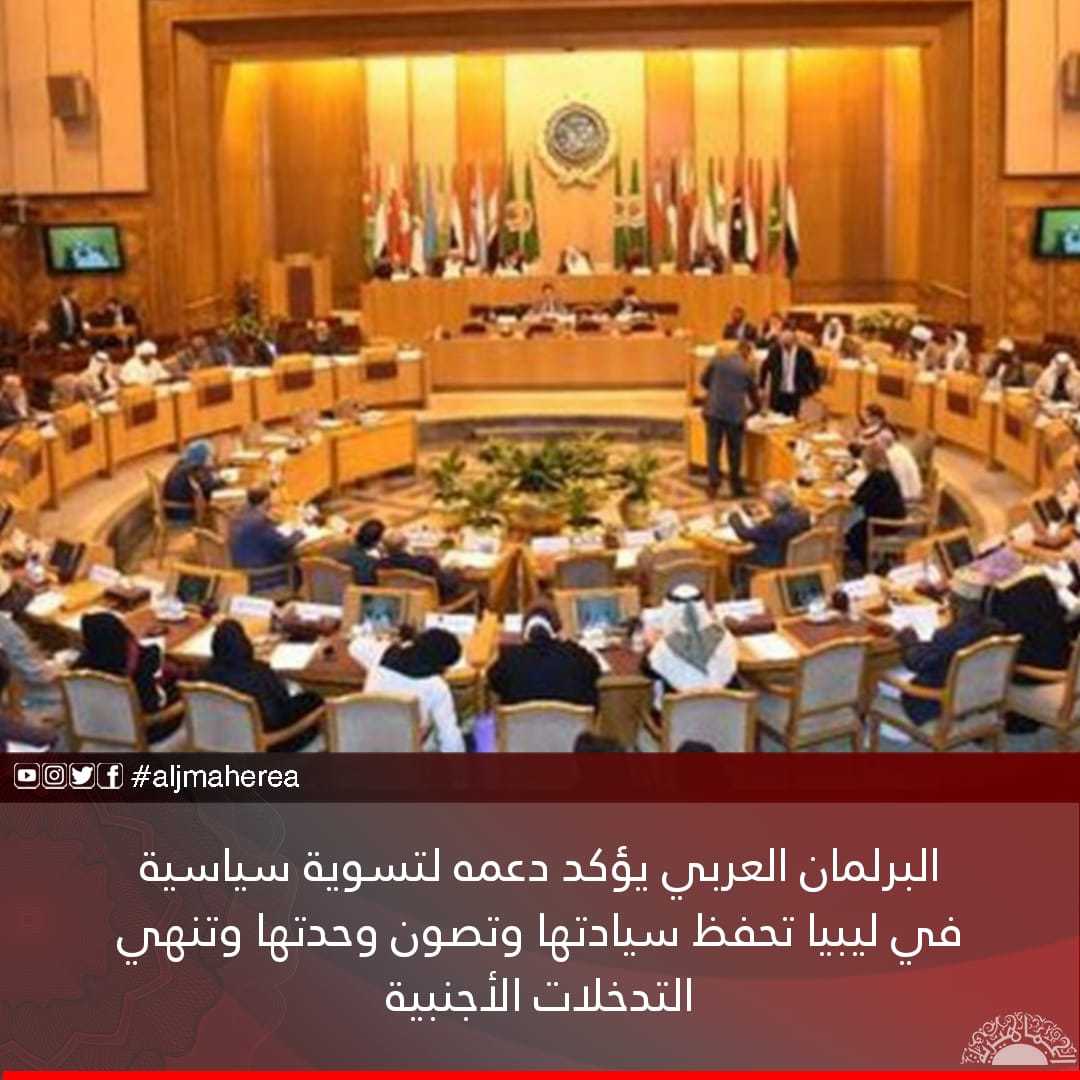 البرلمان العربي يؤكد دعمه لتسوية سياسية في ليبيا تحفظ سيادتها وتصون وحدتها وتنهي التدخلات الأجنبية