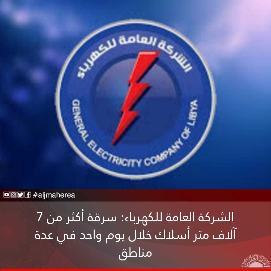 أنه تم سرقة 1200 متر أسلاك نحاس بدائرة توزيع الساحل بإدارة توزيع المرقب، و1450 مترا بدائرة توزيع شرق زليتن، و1200 متر بدائرة توزيع سيدي السائح بترهونة، إضافة إلى 750 مترا بدائرة توزيع الكريمية بإدارة توزيع طرابلس.