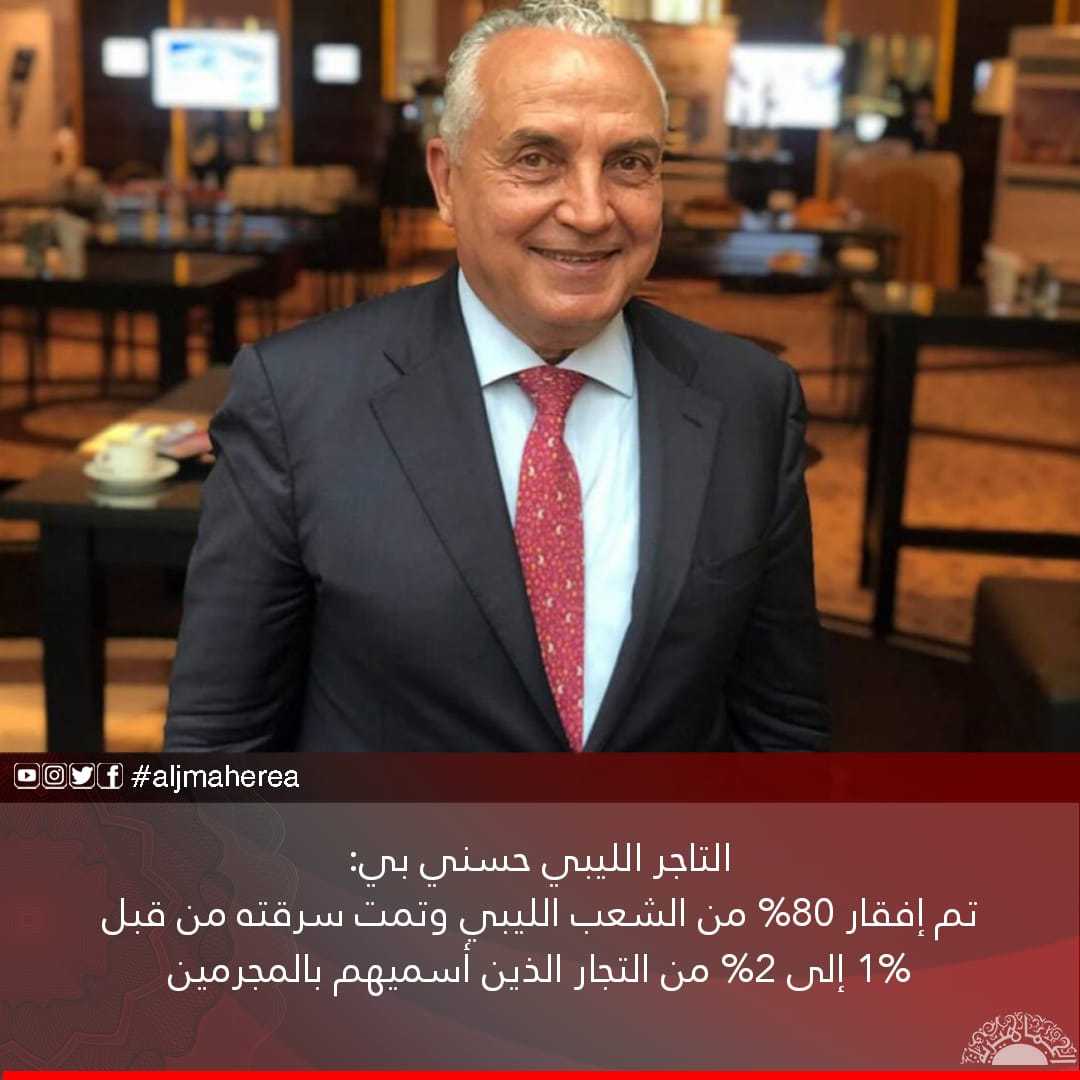 وواصل: “تم إفقار 80% من الشعب الليبي وتم سرقة هذا الشعب من قبل 1% إلى 2% من التجار الذين أسميهم بالمجرمين”، مضيفًا: “وأنا أطالب في هذه المناسبة بضرورة حصر هذه الأموال والنقود التي تم جنيها بطرق فاسدة خلال هذه الفترة والتي تقدر من 50 إلى 60 مليار دينار”.