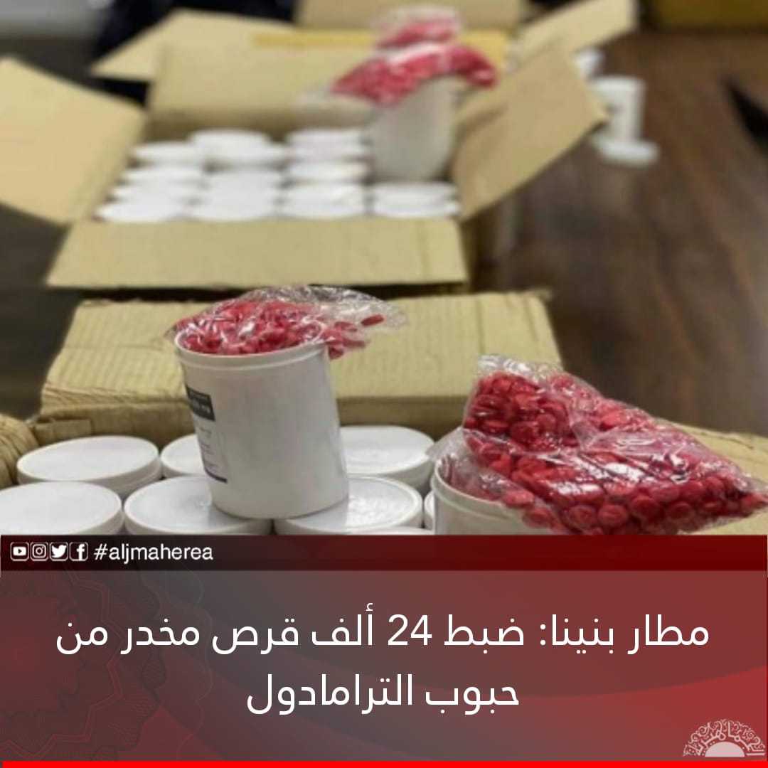 في إطار التصدي لمحاولات تهريب الحبوب المخدرة للداخل الليبي، تمكن أعضاء مركز جمارك مطار بنينا، من ضبط كمية كبيرة من حبوب الترامادول، داخل المطار قادمة من مصر علي طائرة من الخطوط الأفريقية.