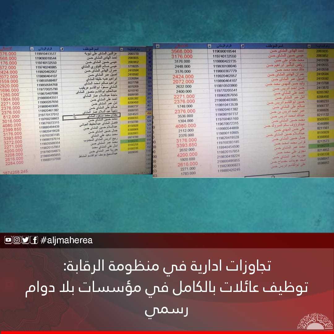 تجاوزات ادارية في منظومة الرقابة: توظيف عائلات بالكامل في مؤسسات بلا دوام رسمي