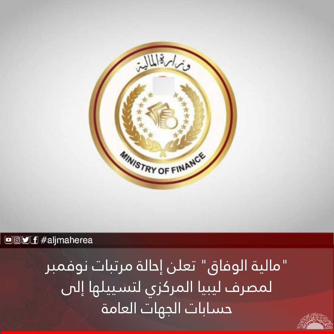 “مالية الوفاق” تعلن إحالة مرتبات نوفمبر لمصرف ليبيا المركزي لتسييلها إلى حسابات الجهات العامة