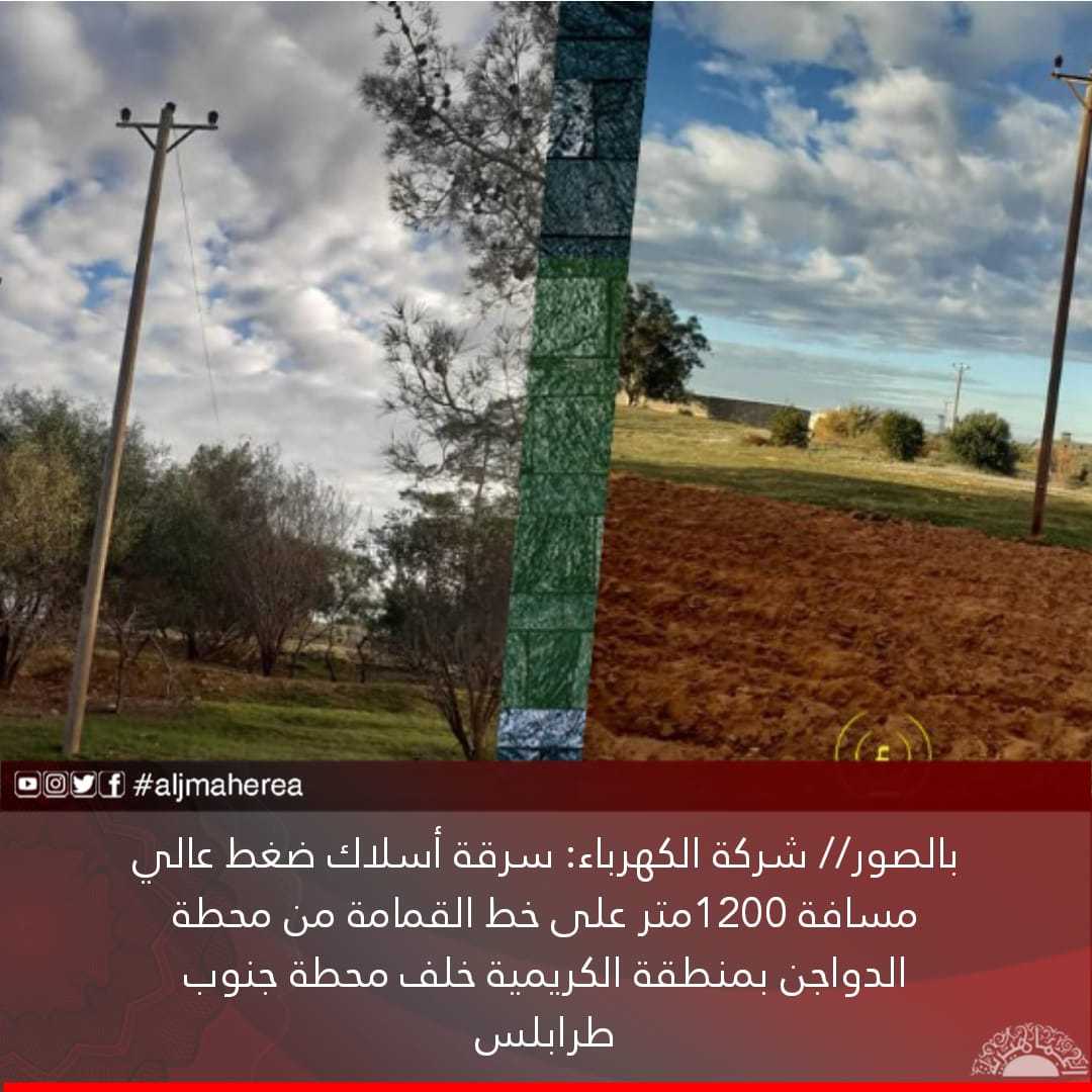 بالصور// شركة الكهرباء: سرقة أسلاك ضغط عالي مسافة 1200متر على خط القمامة من محطة الدواجن بمنطقة الكريمية خلف محطة جنوب طرابلس