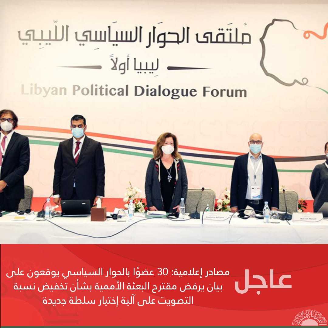 عاجل// مصادر إعلامية: 30 عضوًا بالحوار السياسي يوقعون على بيان يرفض مقترح البعثة الأممية بشأن تخفيض نسبة التصويت على آلية إختيار سلطة جديدة