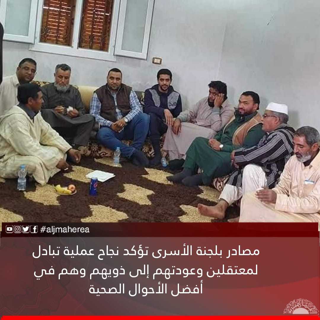 أفادت مصادر بلجنة الأسرى، أن جهود بعض مشايخ هراوة والزنتان، أسفرت عن نجاح عملية تبادل لمعتقلين وعودتهم الى ذويهم وهم في أفضل الأحوال الصحية.