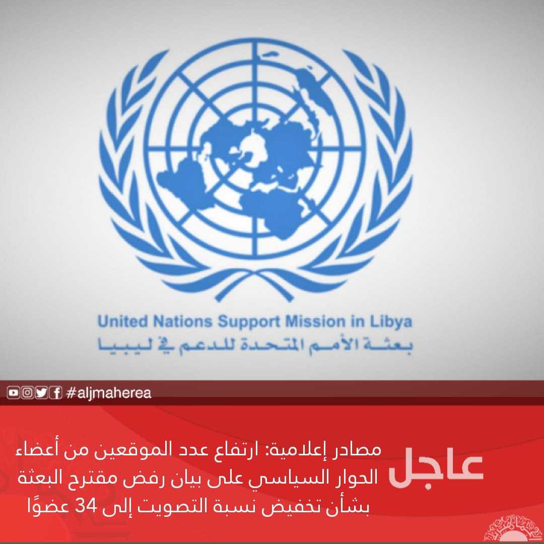 عاجل// مصادر إعلامية: ارتفاع عدد الموقعين من أعضاء الحوار السياسي على بيان رفض مقترح البعثة بشأن تخفيض نسبة التصويت إلى 34 عضوًا