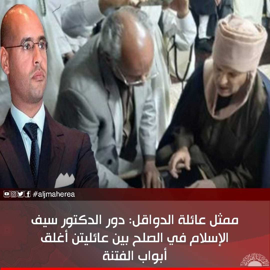 واعتبر الداقل أن الخلاف الذي نشب بين العائلتين كان بابًا من أبواب المؤامرة على ليبيا لدمار القبيلة ومن ثم دمار كل النسيج الاجتماعي في ليبيا، موضحًا أن الدكتور سيف الإسلام كان متابع للقضية واستشعر أهميتها وتواصل مع الكبار والصغار لإرشادهم إلى الطريق الصحيح.