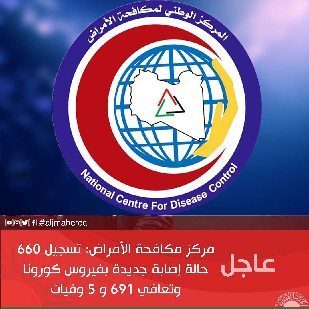عاجل// مركز مكافحة الأمراض: تسجيل 660 حالة إصابة جديدة بفيروس كورونا وتعافي 691 و5 وفيات 5 سنوات ago عاجل// مركز مكافحة الأمراض: تسجيل 660 حالة إصابة جديدة بفيروس كورونا وتعافي 691 و5 وفيات مقالات ذات صلة الأمم المتحدة تدعو لتعزيز الشفافية في استراتيجية ليبيا لمكافحة الفساد عاجل | انتشال 3 جثث لشابين ليبيين وسوداني بعد احتراق سيارة في حادث جنوب غرب الكفرة عاجل | حبس ثلاثة مسؤولين في بلدية المليطانية بتهم فساد مالي