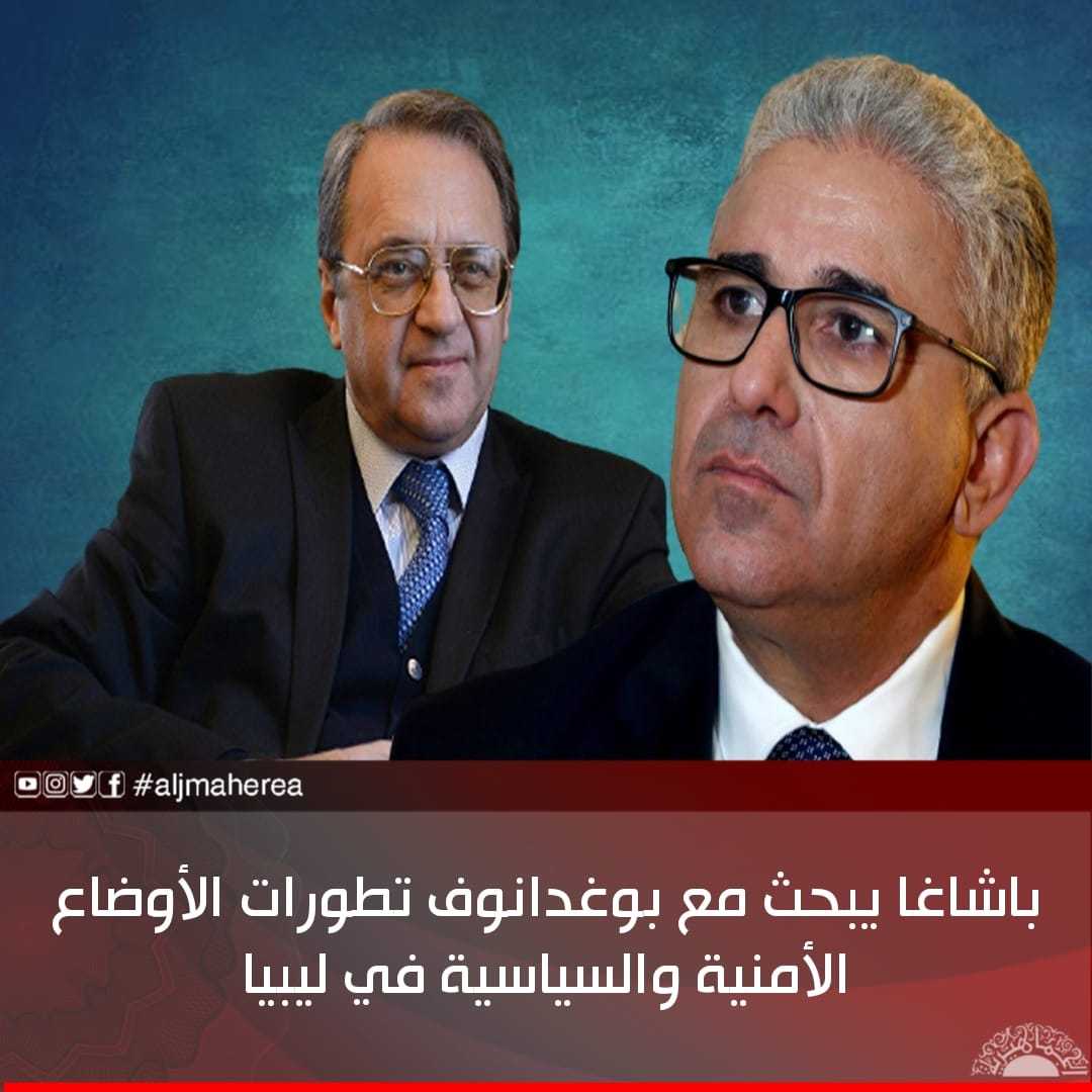 جاء ذلك في اتصال هاتفي أجراه باشاغا مع بوغدانوف اليوم الثلاثاء، جرى خلاله استعراض تطورات الأوضاع في البلاد، وعدد من المواضيع ذات الاهتمام المشترك.