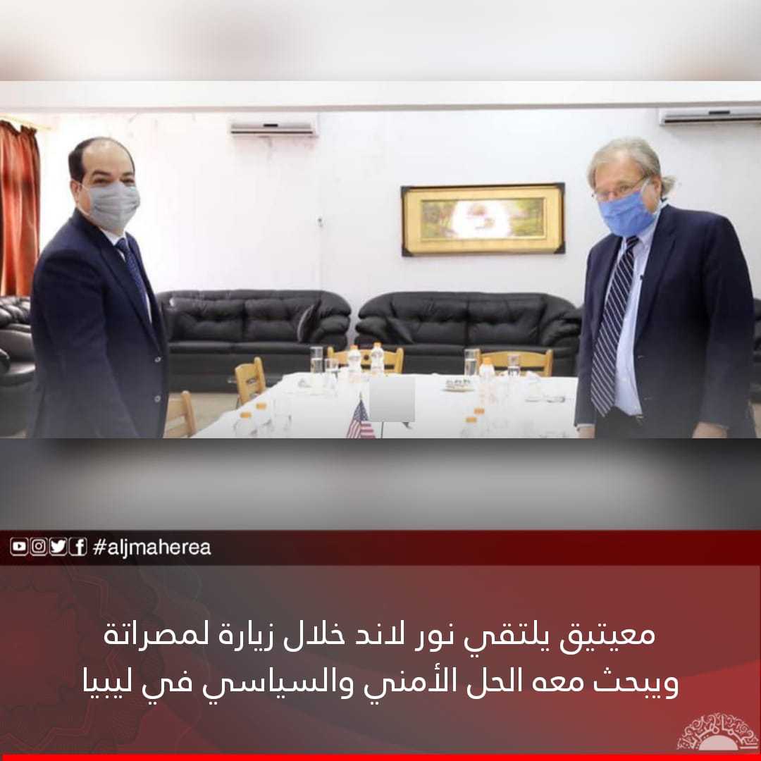 في إطار لقاءاته وجولاته للترويح لاسمه ضمن المرشحين لرئاسة الحكومة المقبلة، التقى نائب رئيس المجلس الرئاسي في حكومة الوفاق غير الشرعية، أحمد معيتيق  سفير الولايات المتحدة الأمريكية ريتشارد نورلاند أثناء زيارته إلى مدينة مصراتة.
