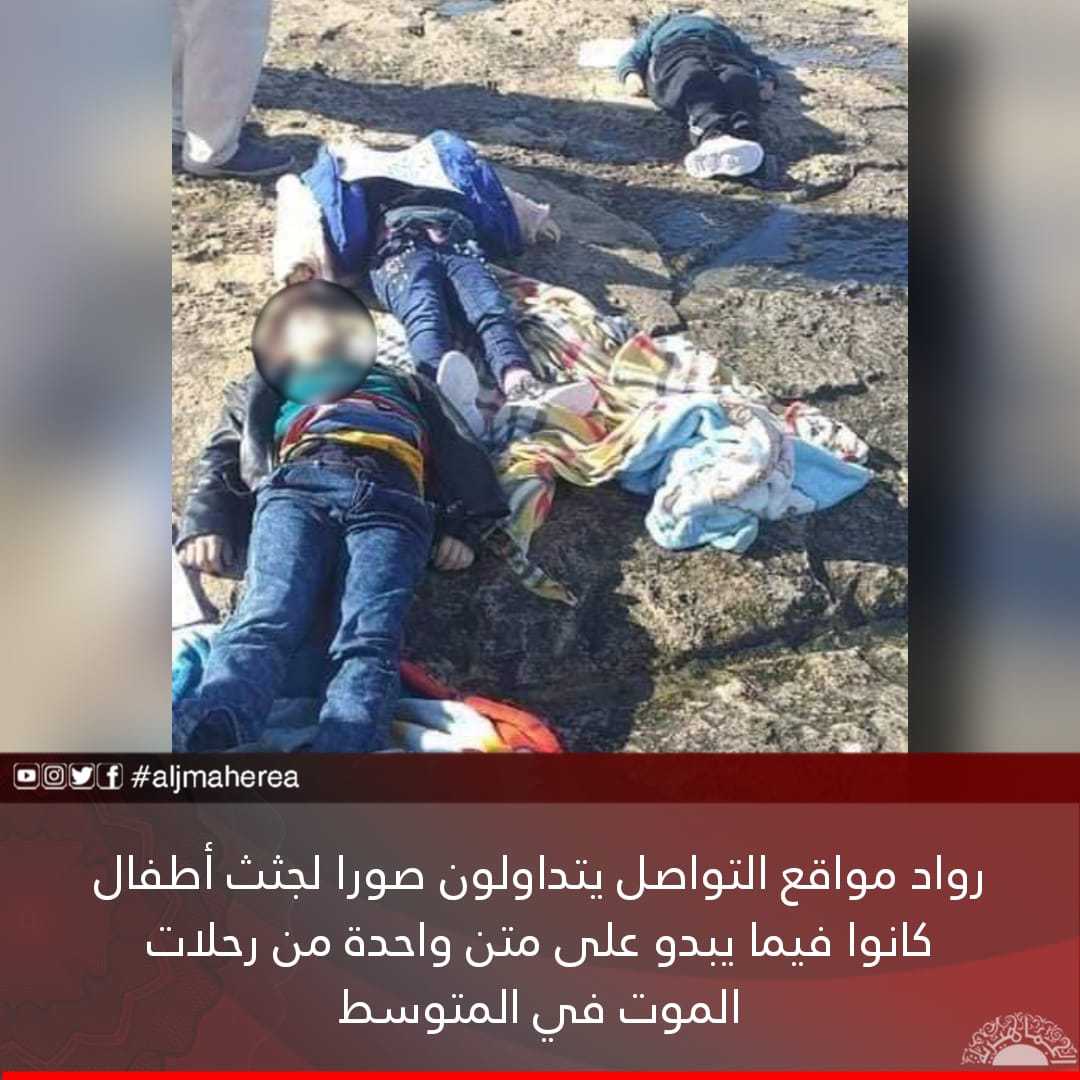 تداول رواد مواقع التواصل الاجتماعي، اليوم الأربعاء، صورًا لجثث أطفال على شواطئ مطرد في منطقة الزاوية.
