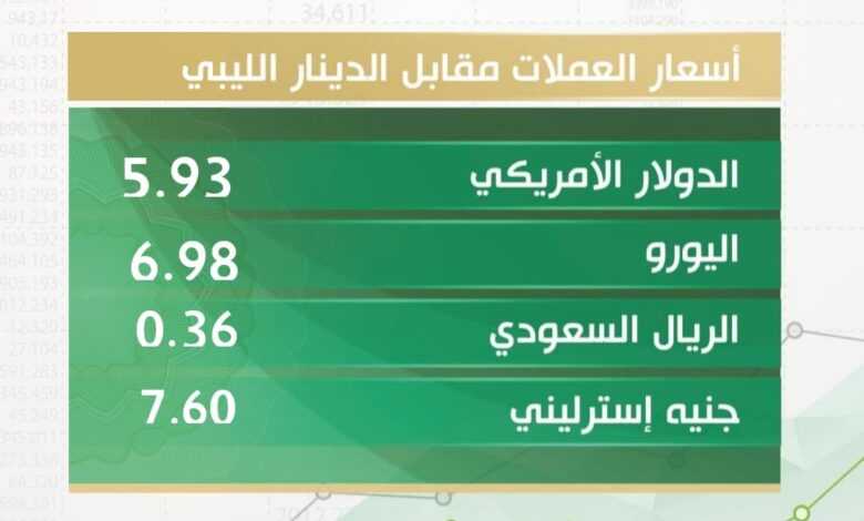 الدولار الأمريكي – طرابلس 5.93 و5.95 دينار