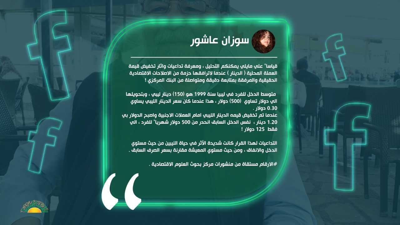 التداعيات لهذا القرار كانت شديدة الأثر في حياة الليبين من حيث مستوي الدخل والانفاق ، ومن حيث مستوي المعيشة مقارنة بسعر الصرف السابق .
