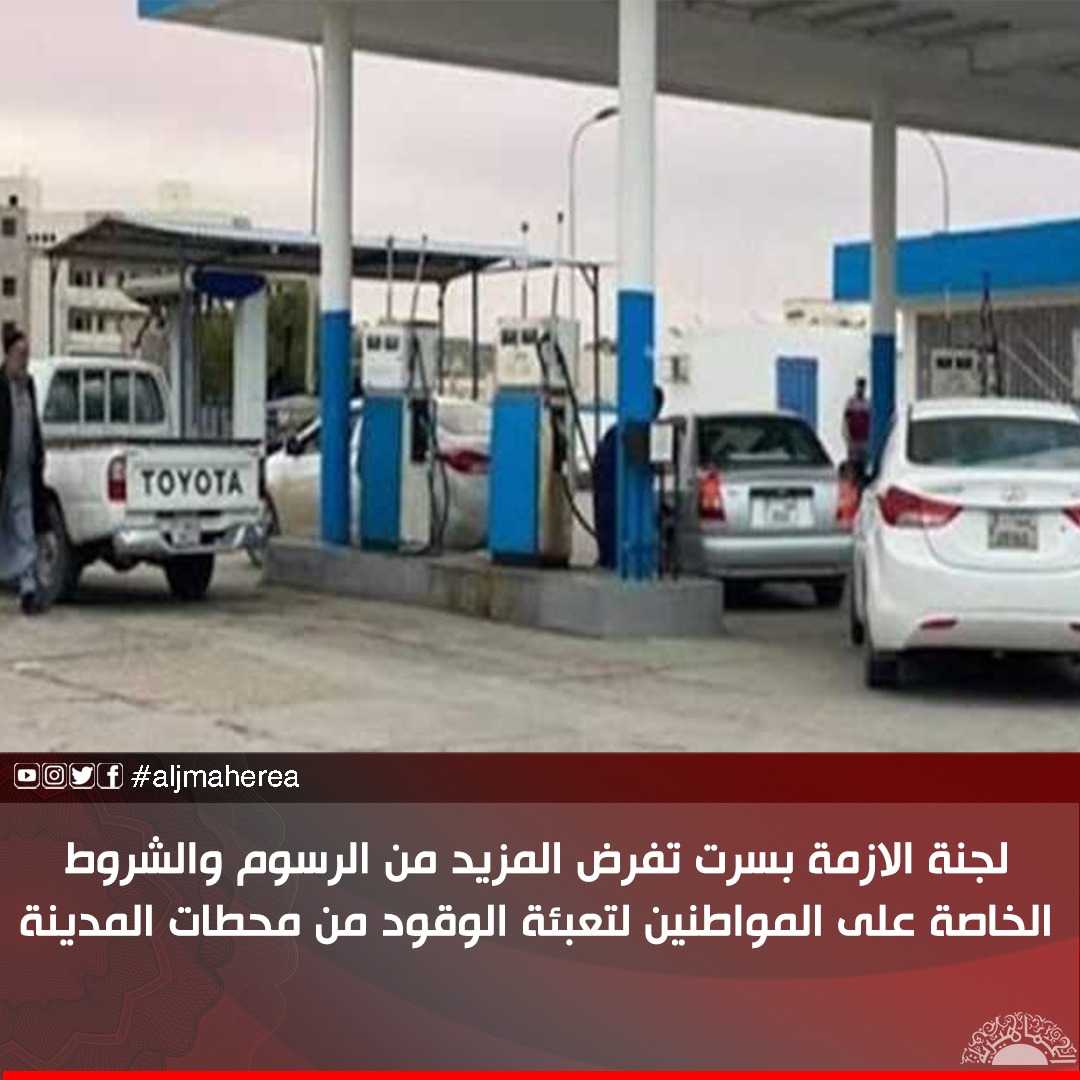 لجنة الازمة بسرت تفرض المزيد من الرسوم والشروط الخاصة على المواطنين لتعبئة الوقود من محطات المدينة