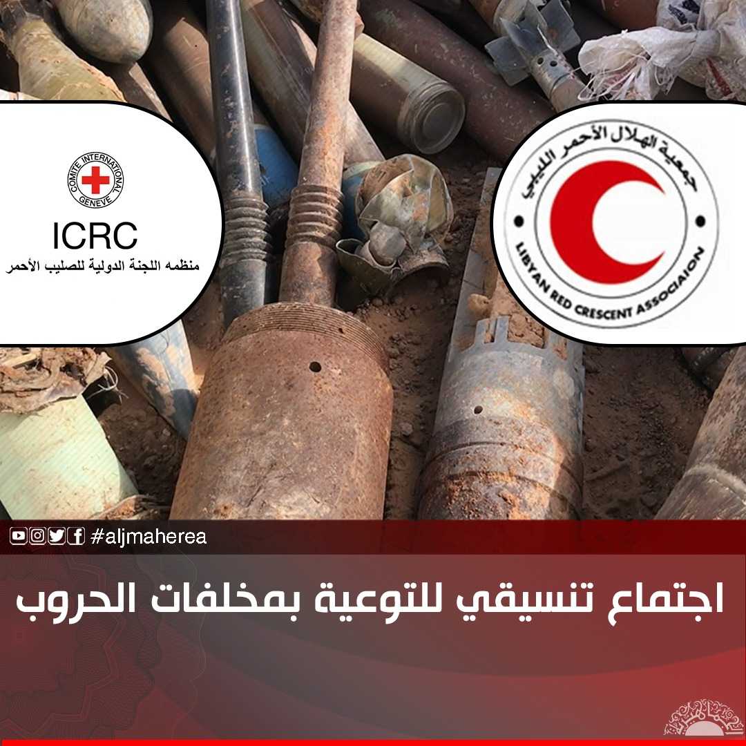 عقدت جمعية الهلال الأحمر الليبي أمس مع اللجنة الدولية للصليب الأحمر، الاجتماع التنسيقي الأول الخاص بالتوعية بمخلفات الحروب.