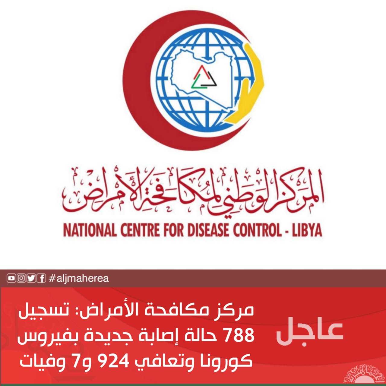 عاجل// مركز مكافحة الأمراض: تسجيل 788 حالة إصابة جديدة بفيروس كورونا وتعافي 924 و7 وفيات 5 سنوات ago مقالات ذات صلة محامي سيف الإسلام يفند مزاعم خالد المشري حول أحقية ترشحه للرئاسة الأرصاد الجوية: طقس مستقر على معظم مناطق البلاد اليوم الجهاني: الأزمة الليبية تدخل عامها 15 وسط مخاطر التقسيم والحرب