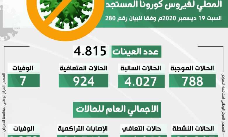 – عدد (788) عينة موجبة ( 577 جديدة + 211 مخالطة )