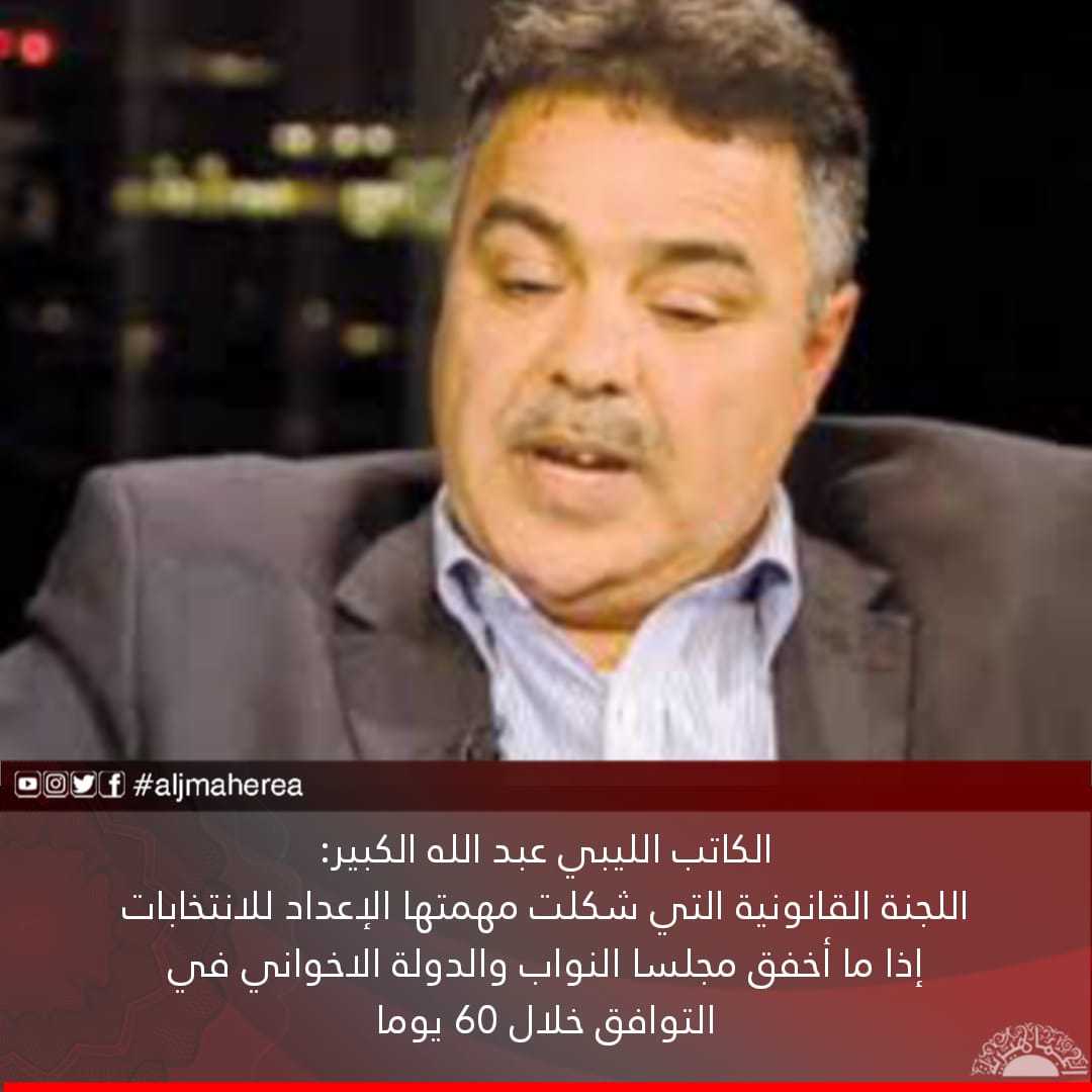 الكاتب الليبي عبد الله الكبير: اللجنة القانونية التي شكلت مهمتها الإعداد للانتخابات إذا ما أخفق مجلسا النواب والدولة الاخواني في التوافق خلال 60 يوما
