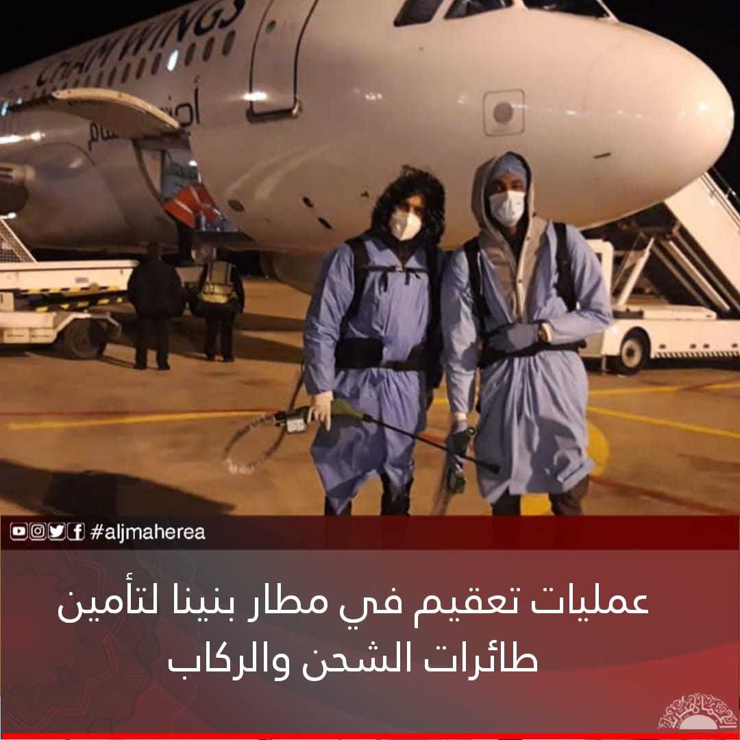 عمليات تعقيم في مطار بنينا لتأمين طائرات الشحن والركاب