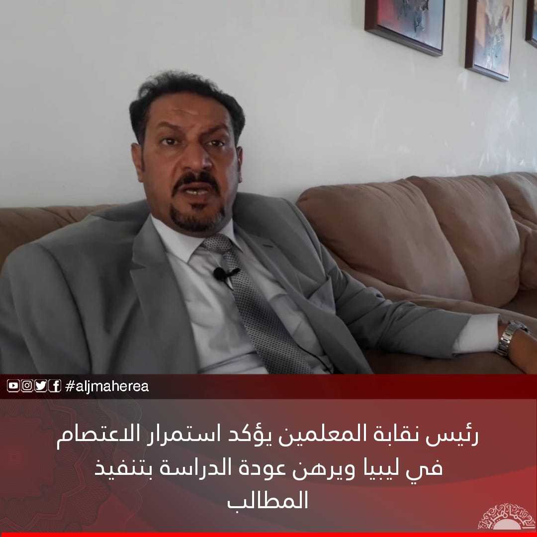 رئيس نقابة المعلمين يؤكد استمرار الاعتصام في ليبيا ويرهن عودة الدراسة بتنفيذ المطالب
