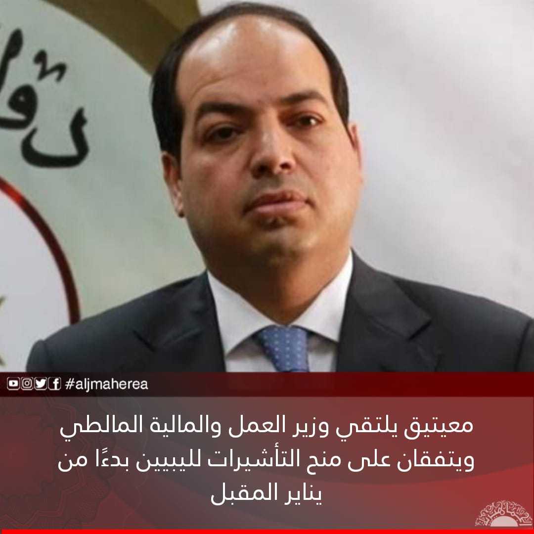 معيتيق يلتقي وزير العمل والمالية المالطي ويتفقان على منح التأشيرات لليبيين بدءًا من يناير المقبل