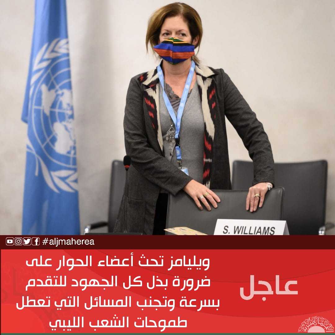 عاجل // ويليامز تحث أعضاء الحوار على ضرورة بذل كل الجهود للتقدم بسرعة وتجنب المسائل التي تعطل طموحات الشعب الليبي
