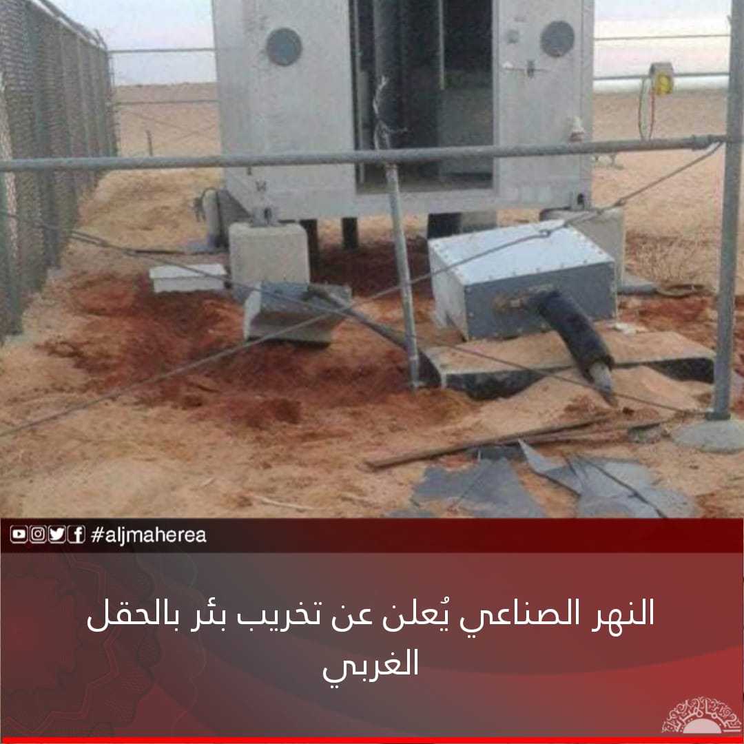 أعلن جهاز تنفيذ وإدارة مشروع النهر الصناعي تعرض البئر 166 بالحقل الغربي إلى التخريب من قبل مجموعة من الخارجين عن القانون.