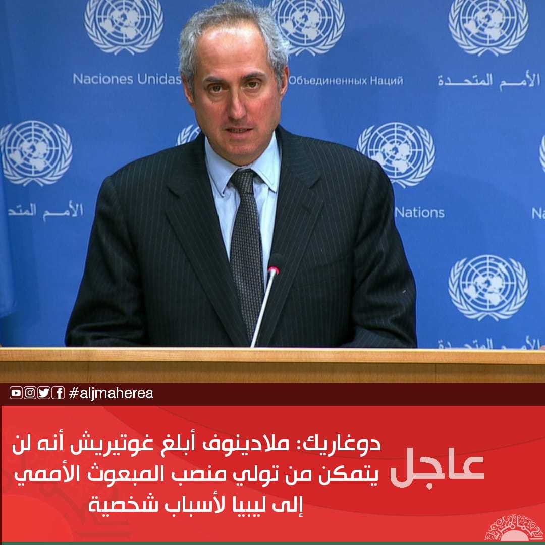 عاجل // دوغاريك: ملادينوف أبلغ غوتيريش أنه لن يتمكن من تولي منصب المبعوث الأممي إلى ليبيا لأسباب شخصية