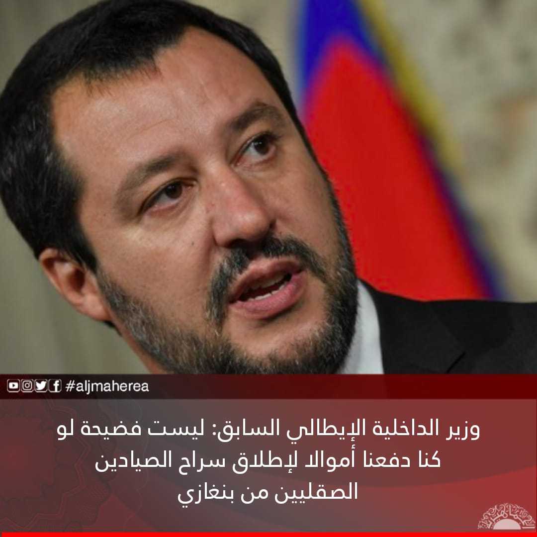 وقال سالفيني، إن دفع المال لإطلاق سراح الصيادين الصقليين من ليبيا ليس فضيحة، لأن روما فعلت الأمر ذاته من قبل لإطلاق مواطنيها الآخرين أيضا.