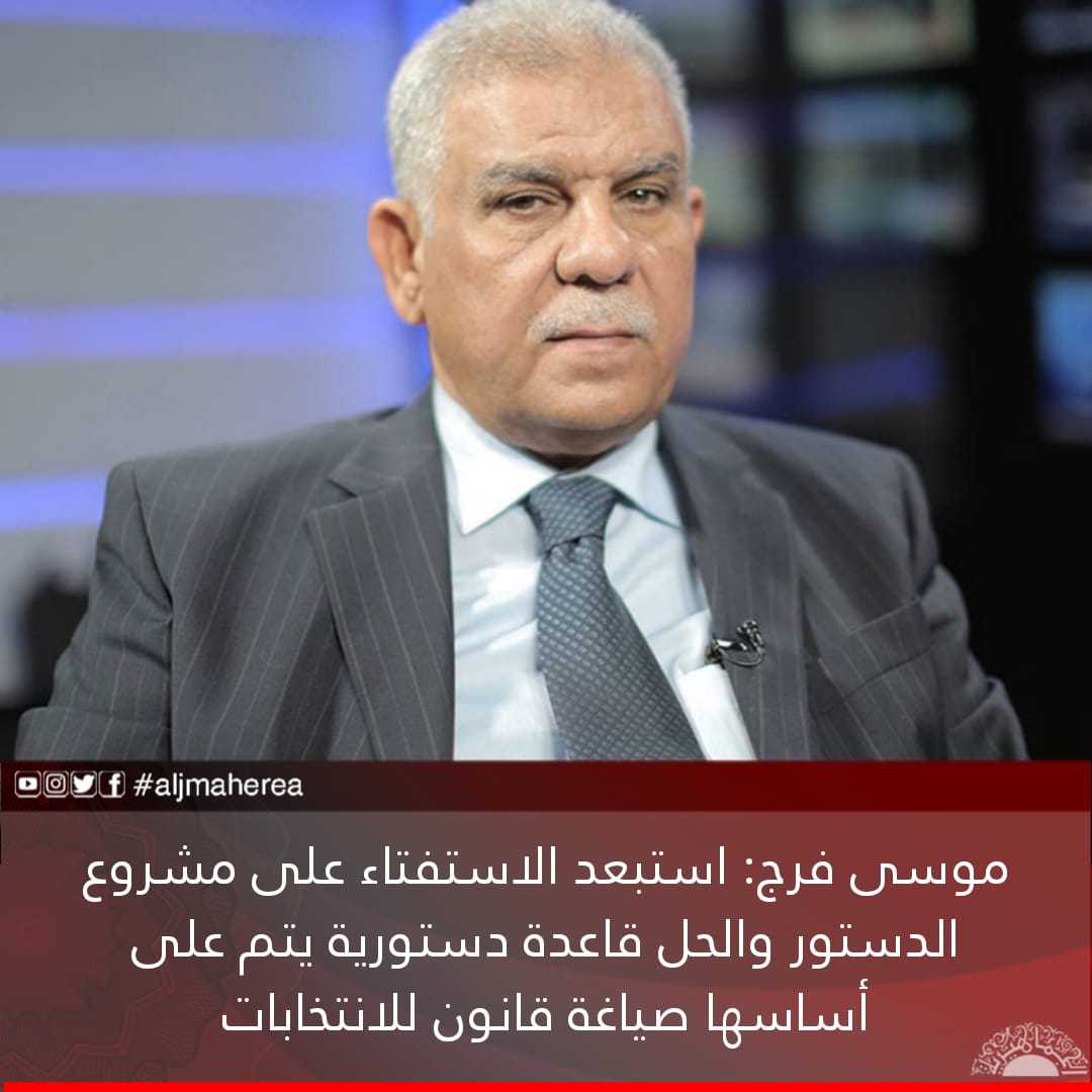 واستبعد إمكانية الاستفتاء على مشروع الدستور؛ لأن هناك خلافًا حادًا على المسألة. والحل في حال عدم التوافق بشأن الاستفتاء على الدستور هو التوافق على قاعدة دستورية يتم على أساسها صياغة قانون للانتخابات لتغير الوجوه والسلطة الموجودة حاليًا.
