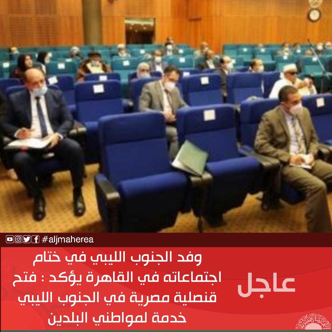 عاجل // وفد الجنوب الليبي في ختام اجتماعاته في القاهرة يؤكد : فتح قنصلية مصرية في الجنوب الليبي خدمة لمواطني البلدين