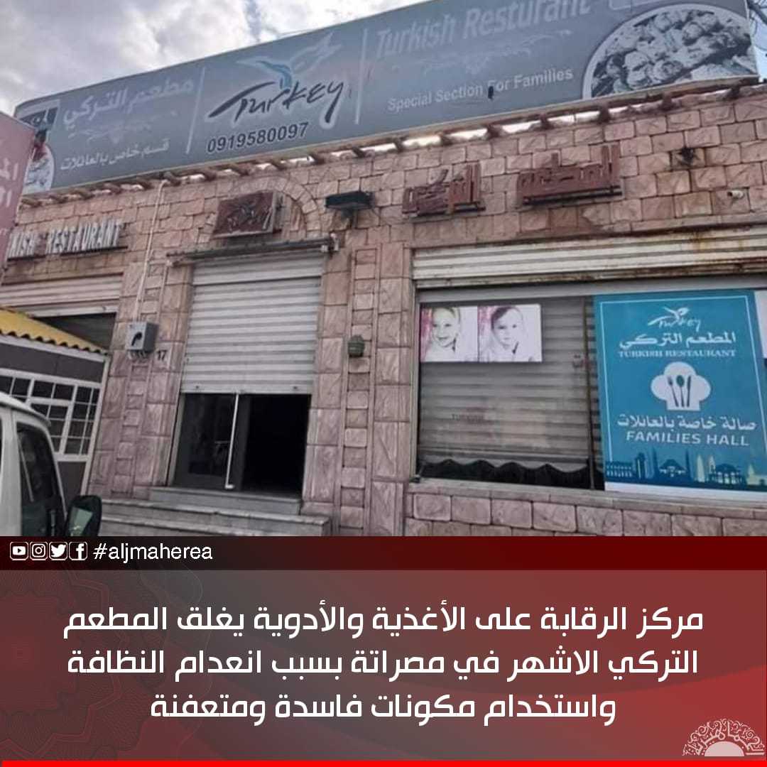 مركز الرقابة على الأغذية والأدوية يغلق المطعم التركي الاشهر في مصراتة بسبب انعدام النظافة واستخدام مكونات فاسدة ومتعفنة