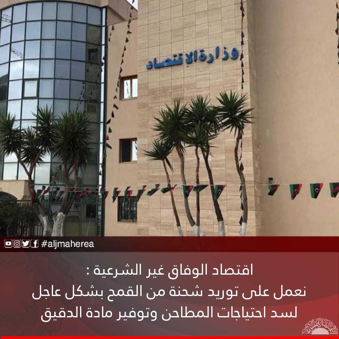 اقتصاد الوفاق غير الشرعية : نعمل على توريد شحنة من القمح بشكل عاجل لسد احتياجات المطاحن وتوفير مادة الدقيق