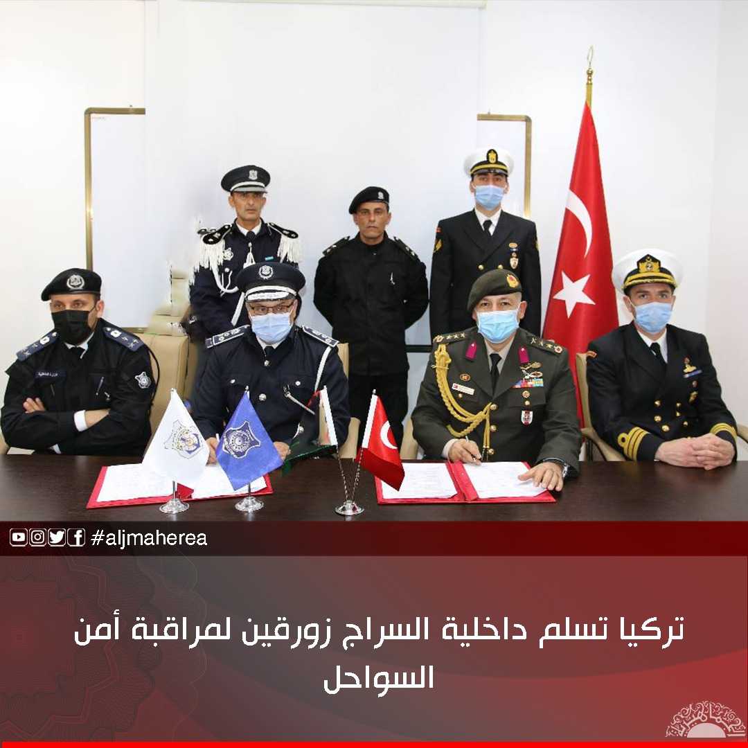 وقع على استلام الزورقين مدير إدارة أمن السواحل، عميد محمد النويصري، ومندوب حرس السواحل التركي رائد مراد يوكسيل.