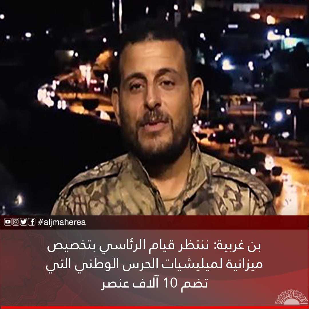 طالب الطاهر بن غربية، رئيس المكتب الإعلامي، لما يسمى بـ”ميليشيات الحرس الوطني”، بضخ ميزانيته من المجلس الرئاسي، زاعما أنه مشروع وطني يضم كل من لبوا نداء الوطن!