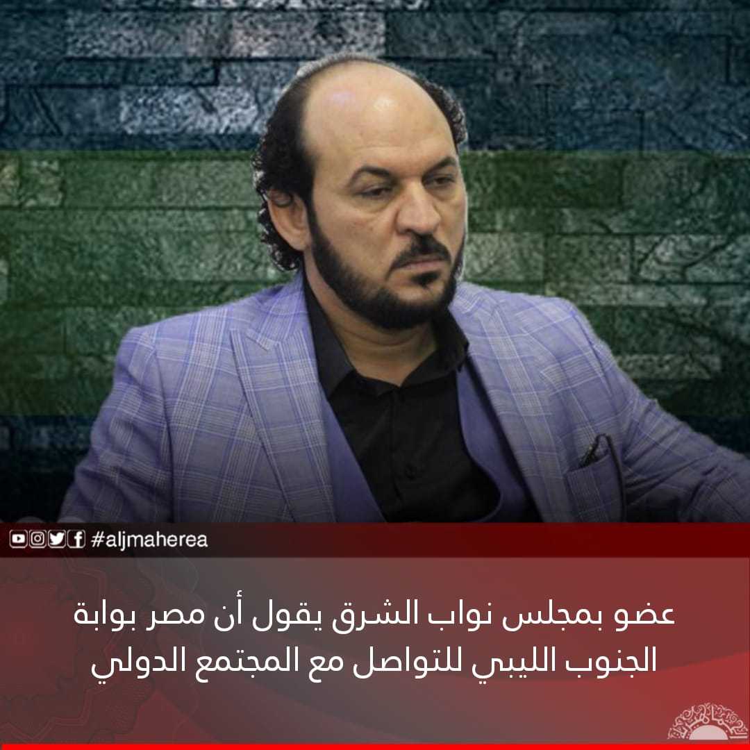 ورأى أن مصر ستكون بوابة الجنوب الليبي للتواصل مع المجتمع الدولي والأمم المتحدة والدول الإقليمية والفاعلة، موضحًا أن الجنوب الليبي يدعم إعلان القاهرة ومخرجات مؤتمر برلين لتشكيل مجلس رئاسي جديد وحكومة وحدة وطنية تمثل جميع الليبيين وتنهي الصراع المسلح.