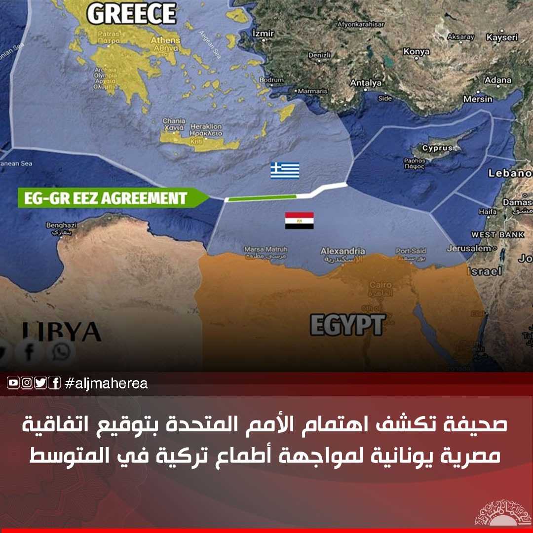 صحيفة تكشف اهتمام الأمم المتحدة بتوقيع اتفاقية مصرية يونانية لمواجهة أطماع تركية في المتوسط