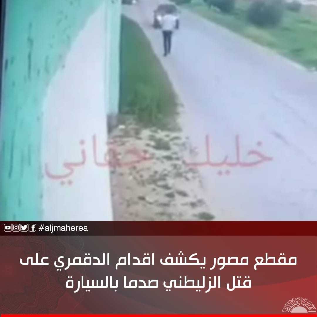 مقطع مصور يكشف اقدام الدقمري على قتل الزليطني صدما بالسيارة
