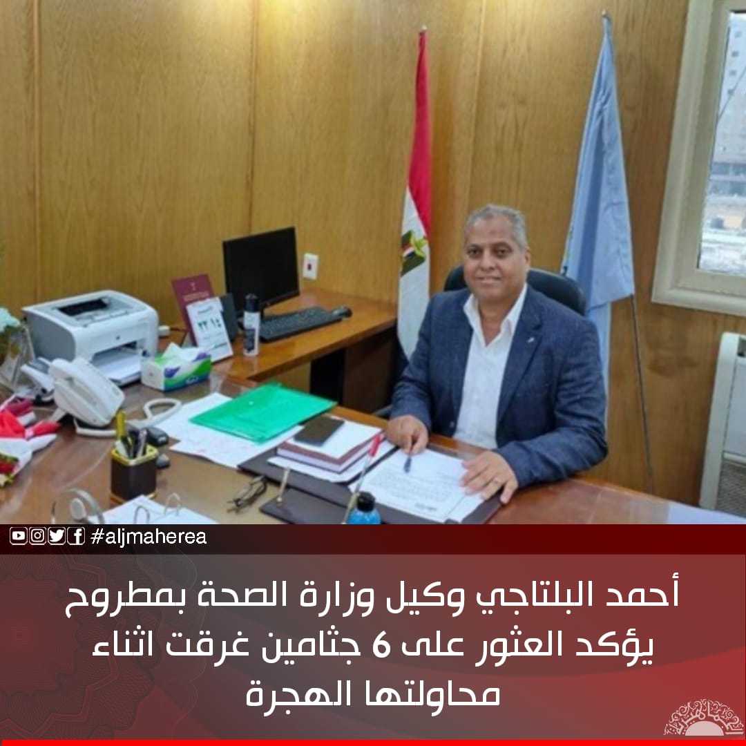 أحمد البلتاجي وكيل وزارة الصحة بمطروح يؤكد العثور على 6 جثامين غرقت اثناء محاولتها الهجرة