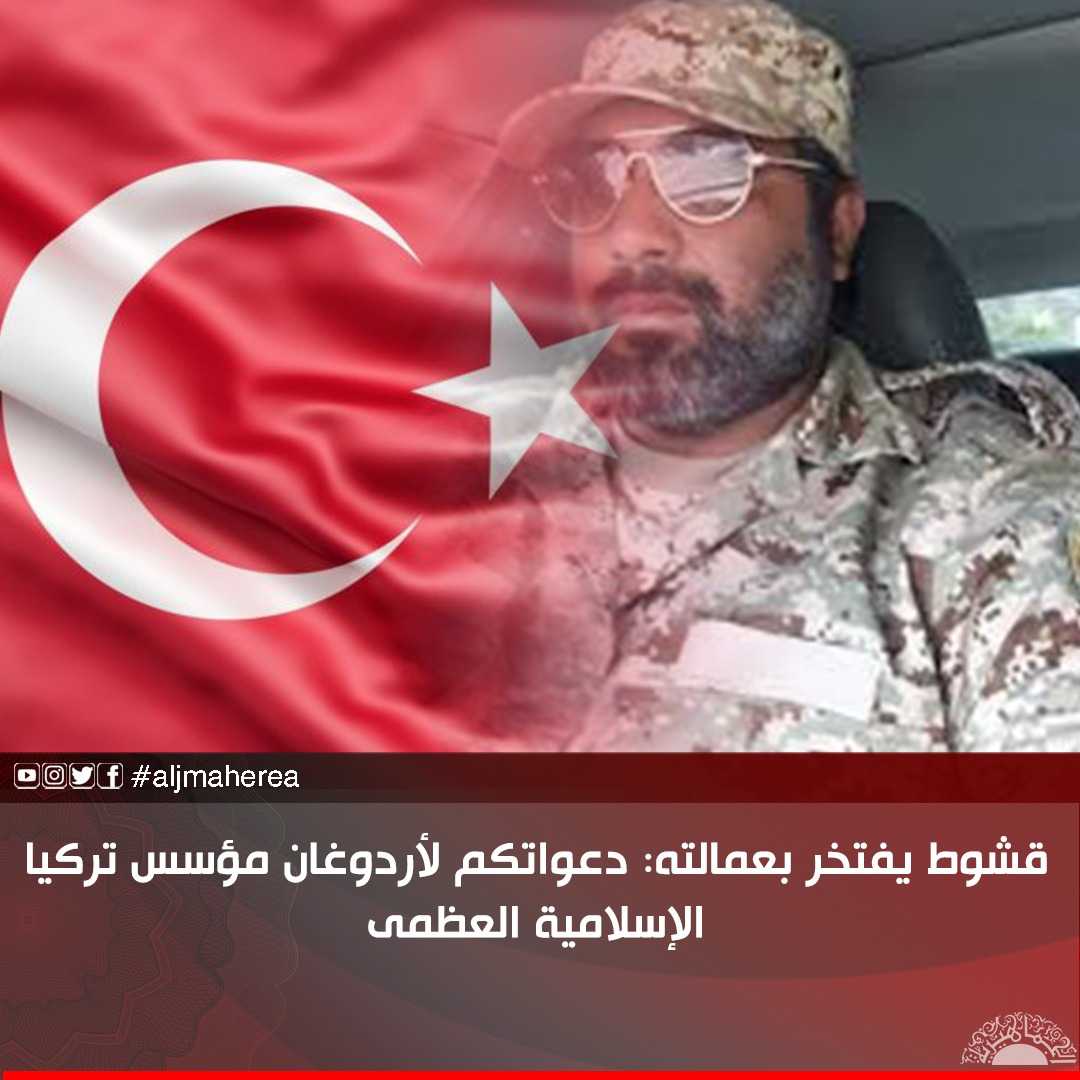 واختتم قشوط تغريدته بالقول: “دعواتكم لمؤسس تركيا الإسلامية العظمى أردوغان!!” وفق تعبيره.
