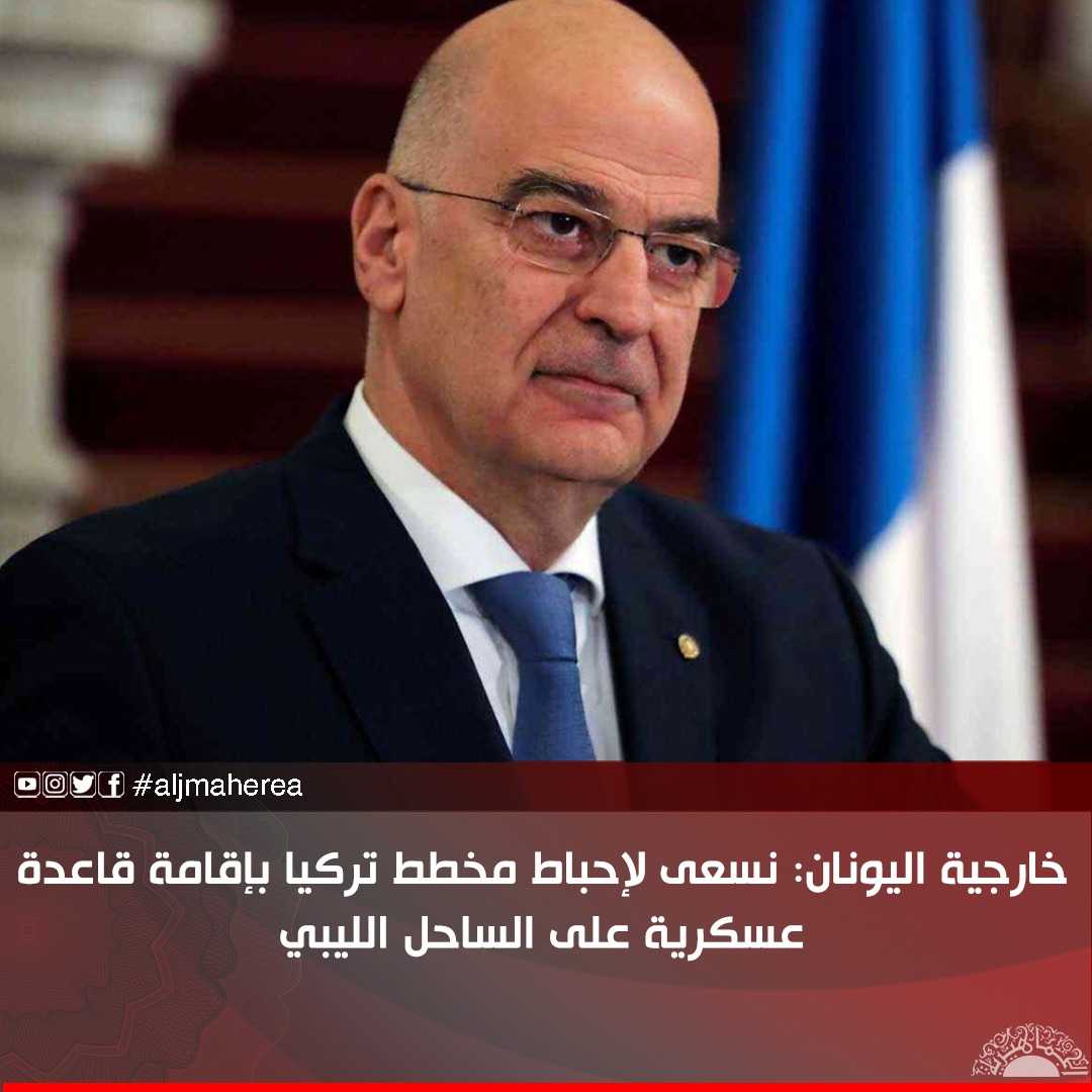 خارجية اليونان: نسعى لإحباط مخطط تركيا بإقامة قاعدة عسكرية على الساحل الليبي